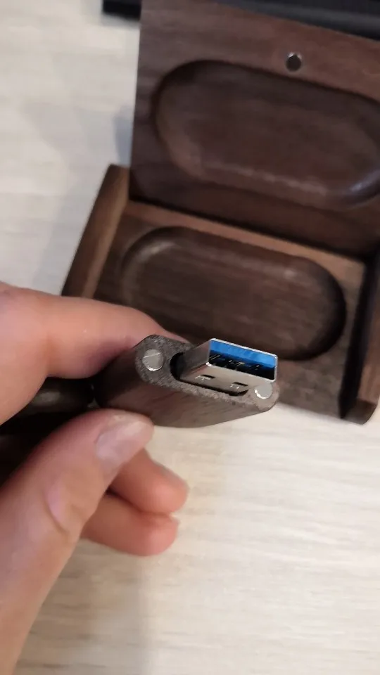Деревянная коробка и крышка диска с сгоревшим логотипом очень хороши и хорошо сделаны. Коробка закрыта магнитами, а также удерживает крышку диска. Внешний вид всего комплекта очень хороший. Это хуже с параметрами usb-накопителя. Средняя скорость чтения 41 МБ/с./с и скорость записи 39 МБ/с./с являются плохими значениями, это определенно не высокоскоростной накопитель USB 3,0, как указано в описании продукта. Кроме того-скорость записи очень переменная, часто останавливается на некоторое время. Однако из-за низкой цены всего комплекта, такое ограничение приемлемо.
