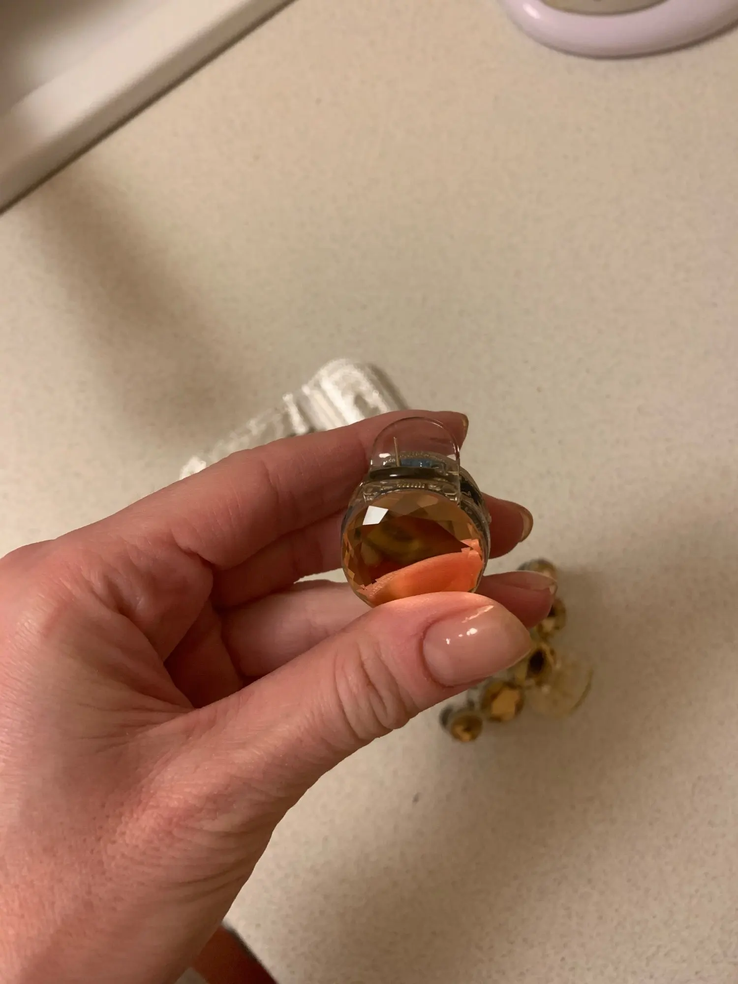 красивая очень, НО ПРИШЛА С ОТВАЛИВШИМСЯ КАМНЕМ. ПРИКЛЕИВАЛА САМА.