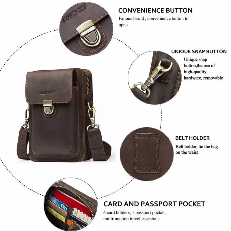 CONTACT'S Сумка на талии из натуральной кожи для телефона, в винтажном стиле с отделением для карт дорожные сумки для мужчин наплечные сумки 2019