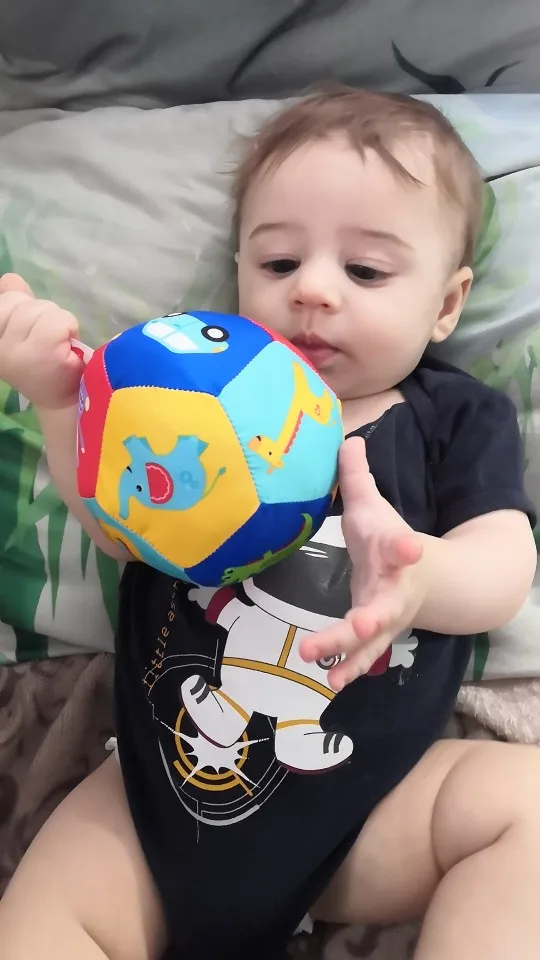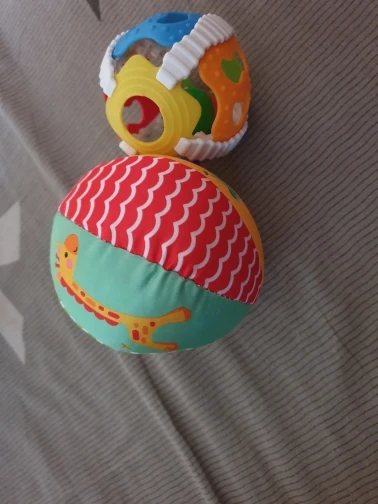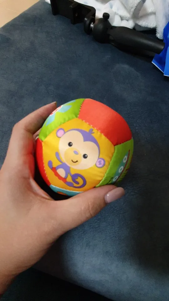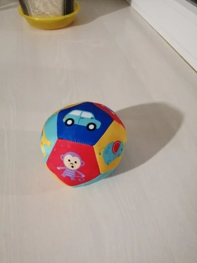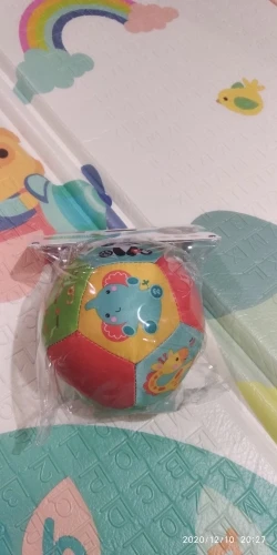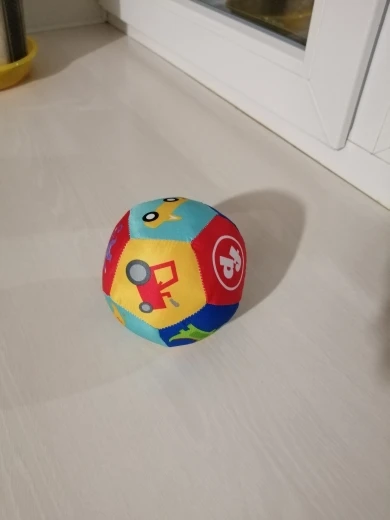 Мячик классный. Мягкий. Прошит очень хорошо. Внутри погремушка. Сыну 4 месяца прям идеально для развития моторики. Лёгкий. В ручках держит его хорошо. Ничем не воняет. Доставка до Барнаула месяц. С продавцом не общалась. Товар рекомендую.