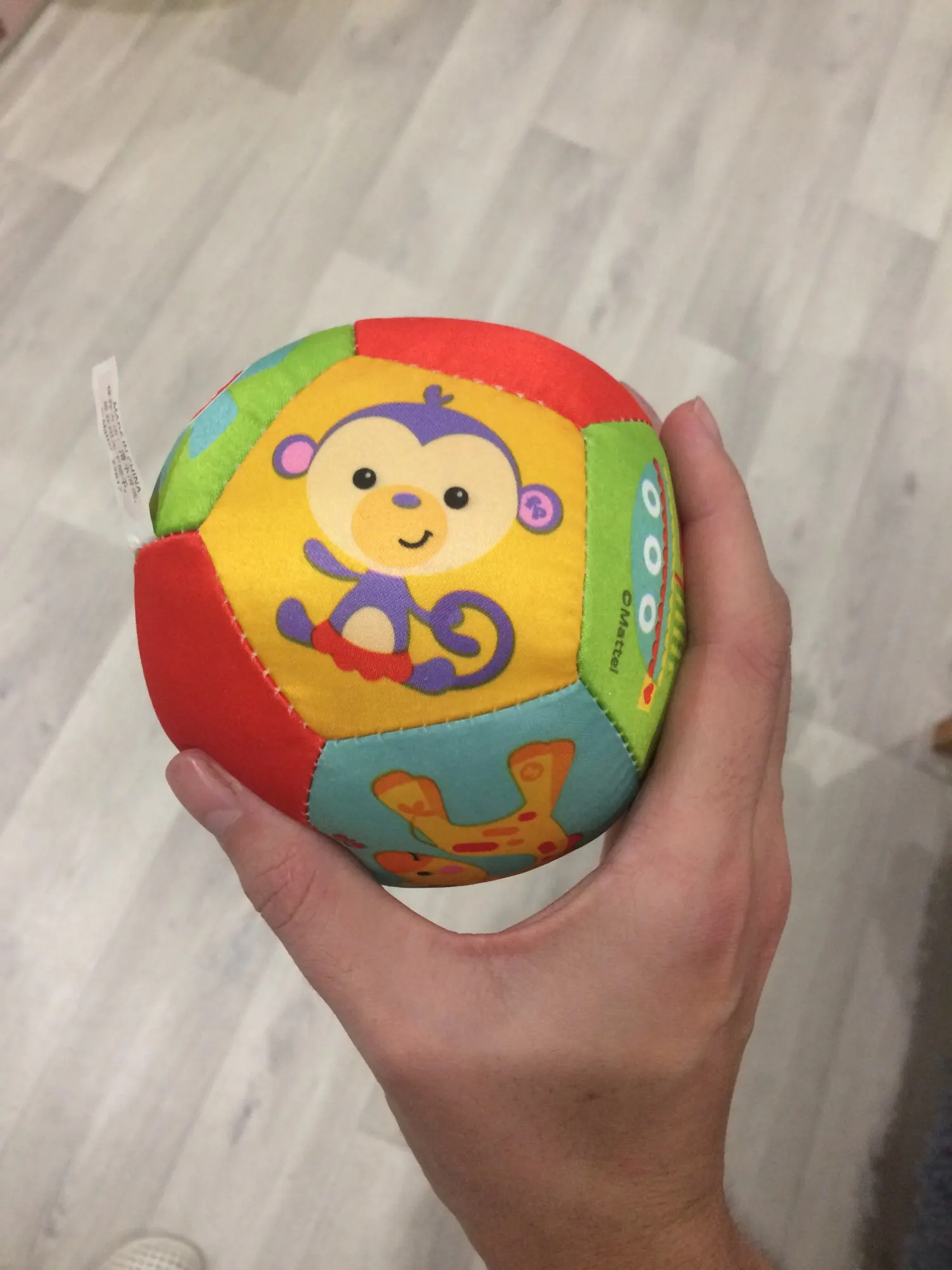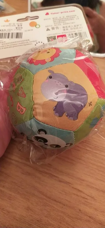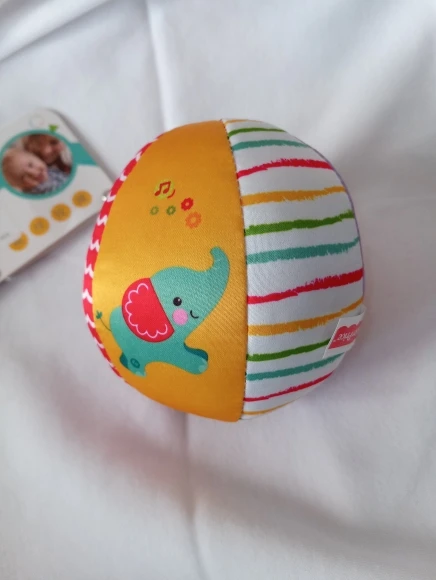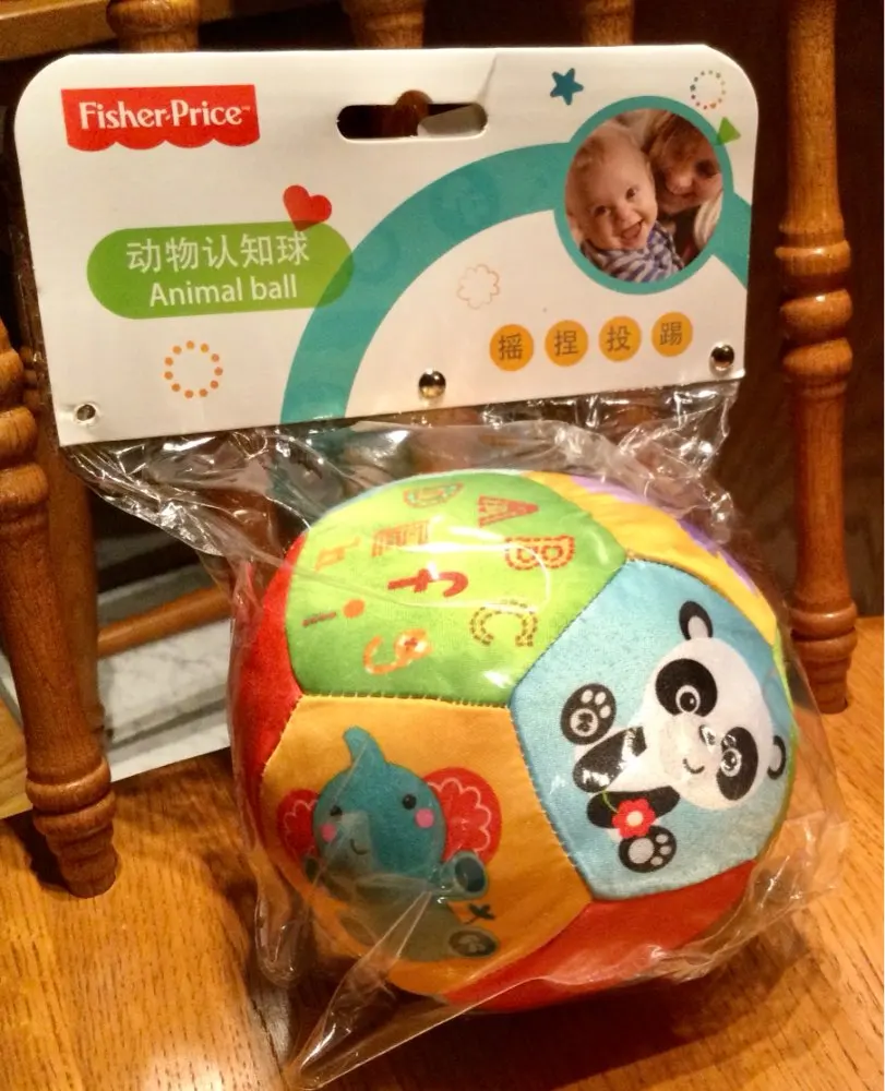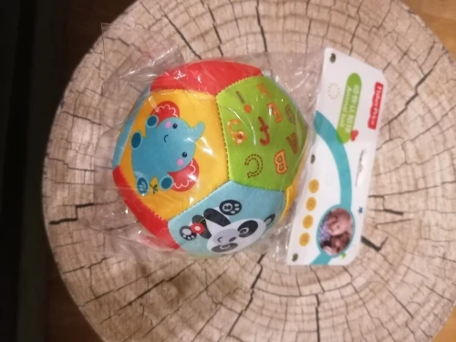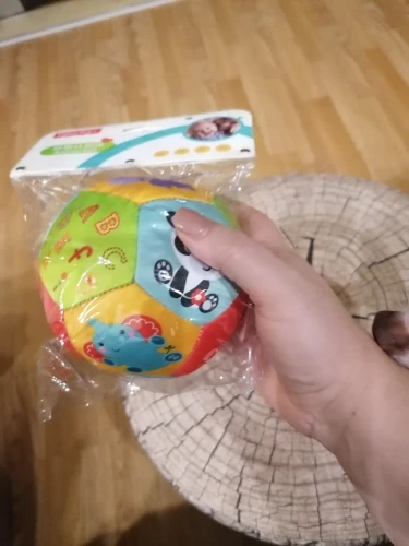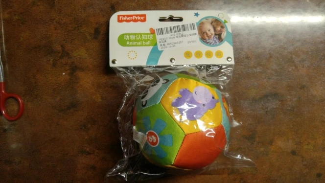 Мячик очень подходящий для малышей - лёгкий и мягкий. В индивидуальной упаковке (фишер прайс - похоже на оригинал).
