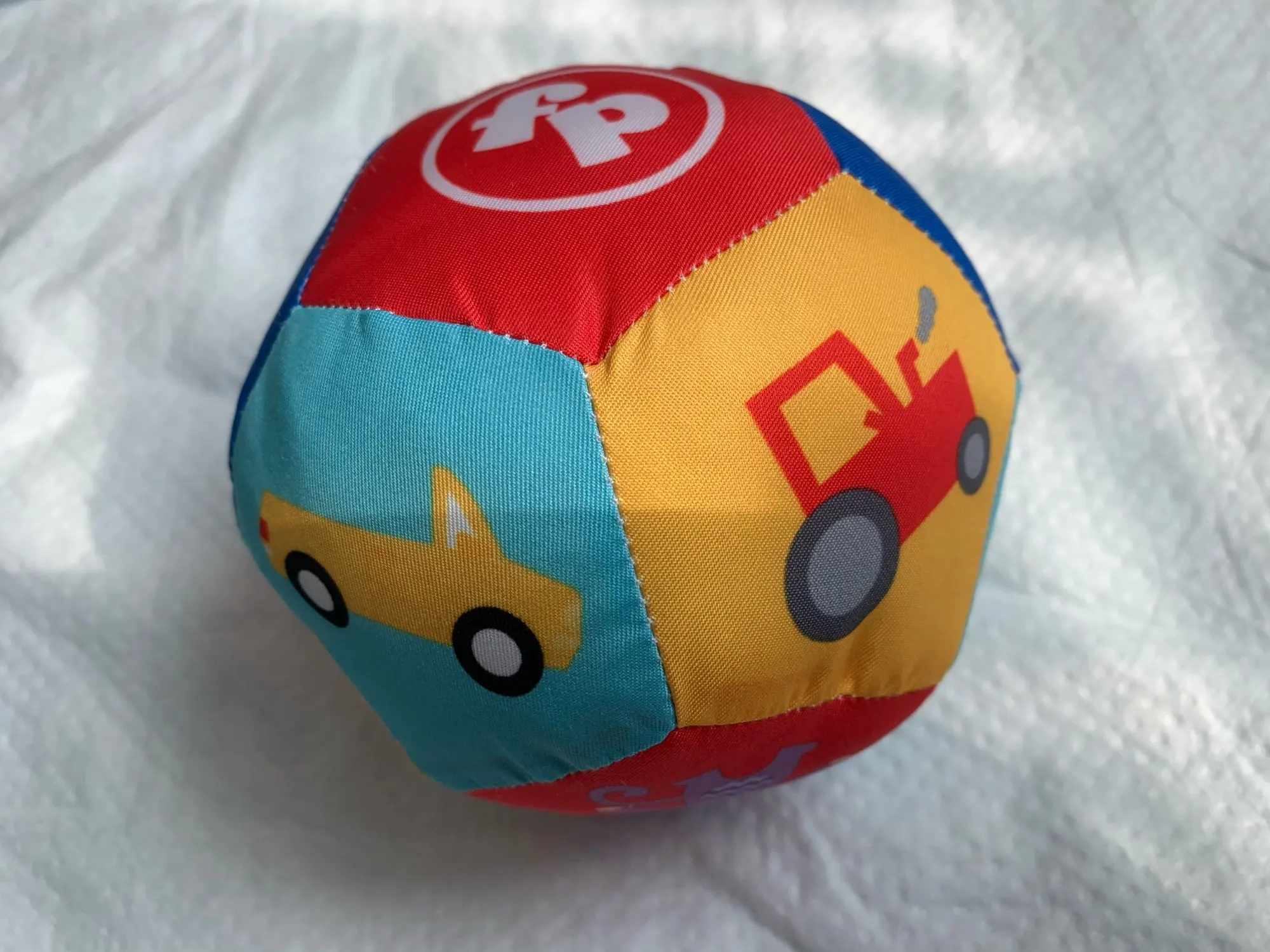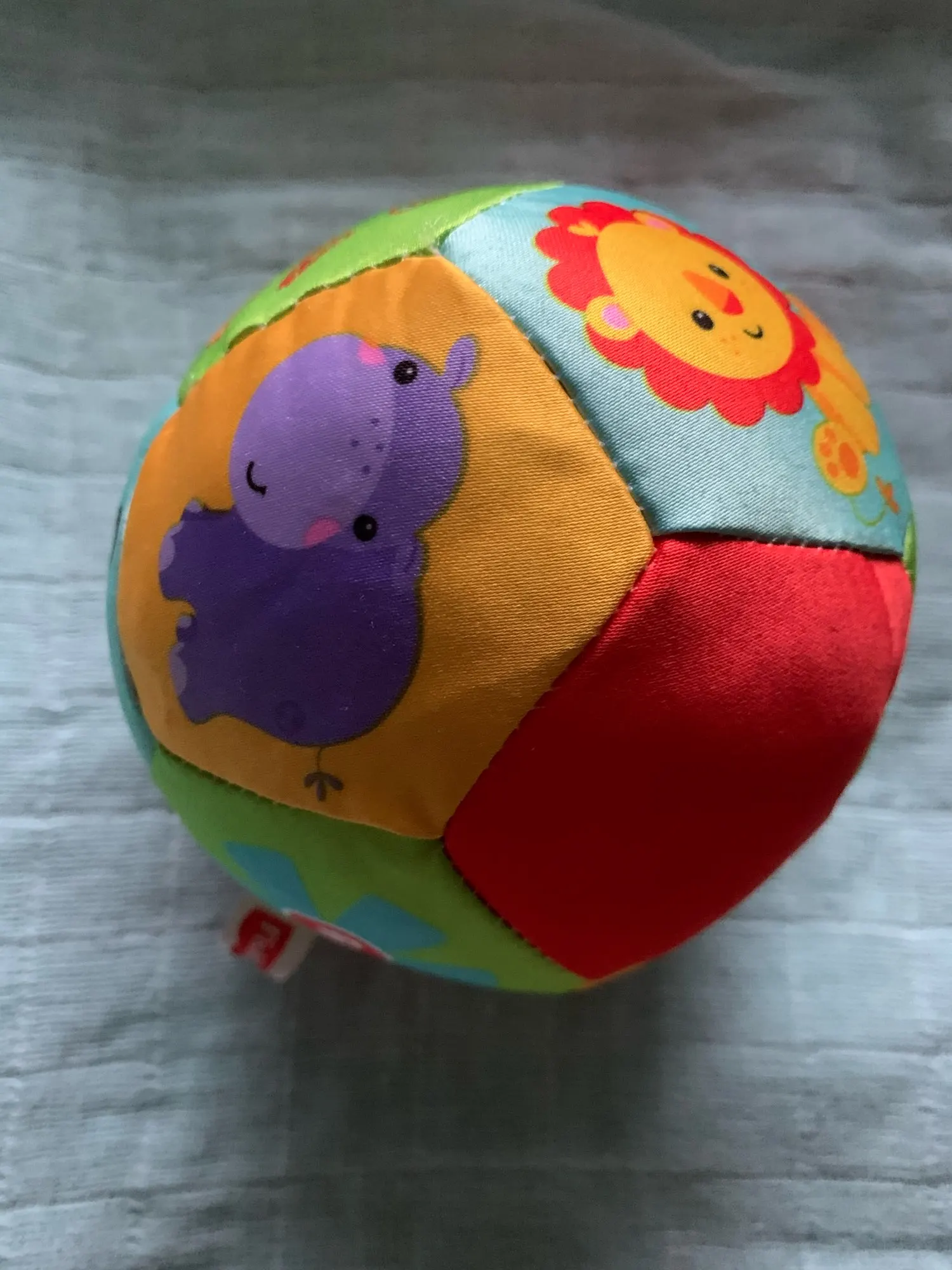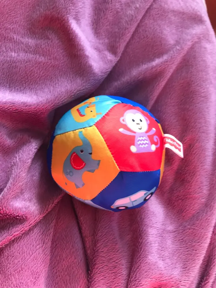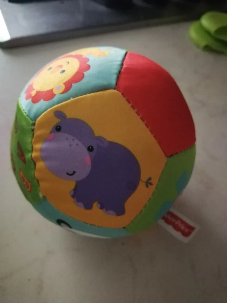 Мячик очень подходящий для малышей - лёгкий и мягкий. В индивидуальной упаковке (фишер прайс - похоже на оригинал).