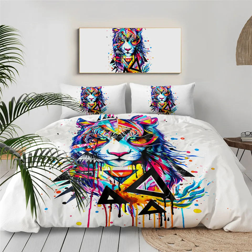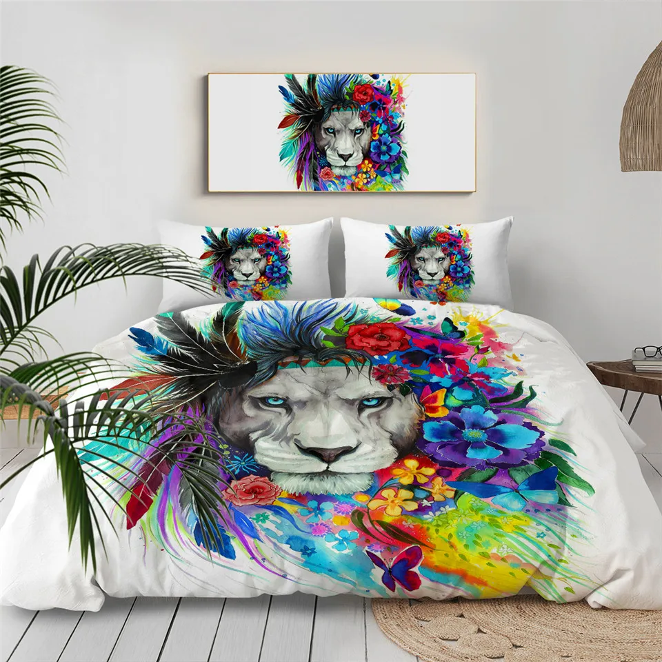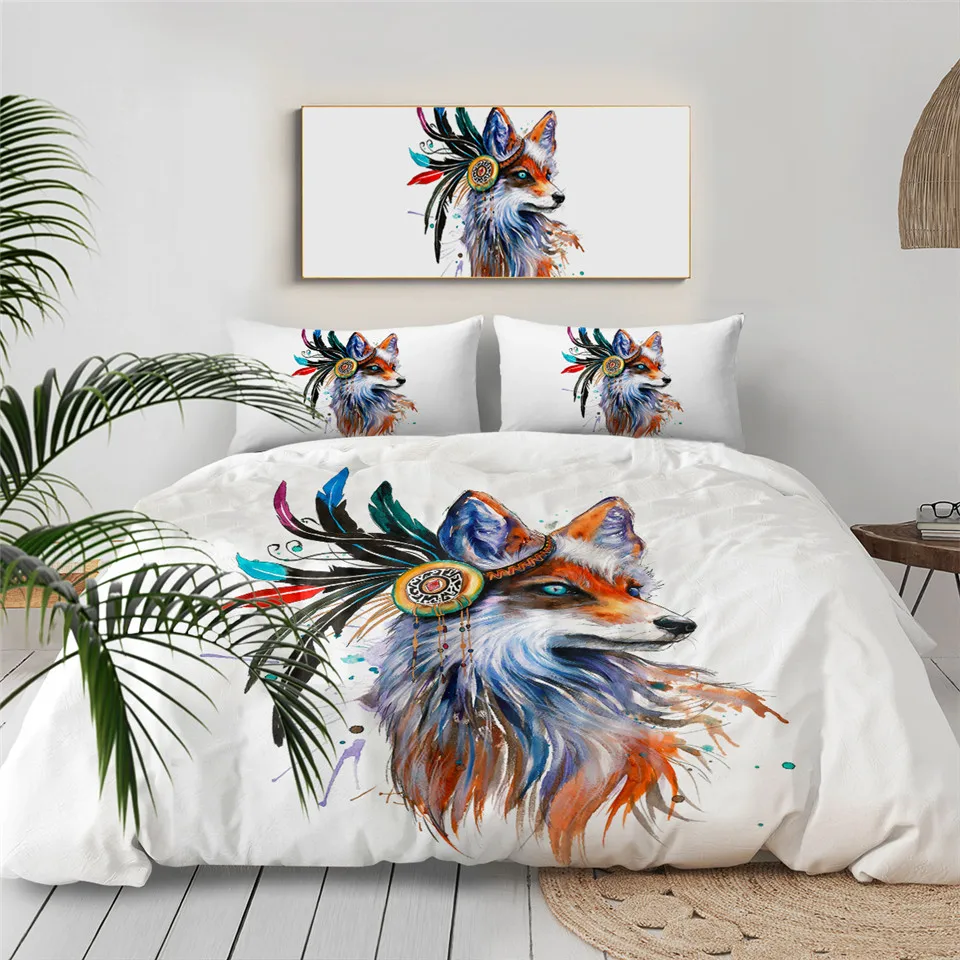 Pferd by Pixie Комплект постельного белья в стиле холодное искусство, набор пододеяльников с этническими лошадками, цветное постельное белье с рисунками животных, акварельный бохо, 3 предмета, домашний текстиль