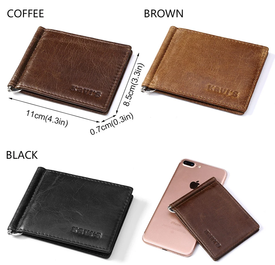 Кошелек KAVIS из натуральной кожи в стиле ретро для мужчин, тонкий ...