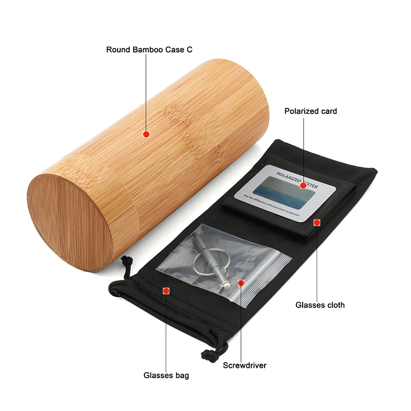 these sunglasses are amazing, I love the natural wood even the case is wood. comes with cloth case and cleaning cloth as well. Absolutely great deal for the price. Shipping was fast too wow tysm.