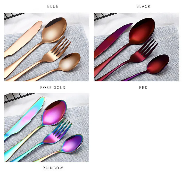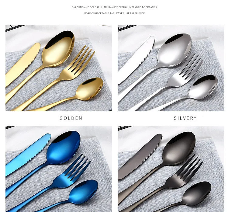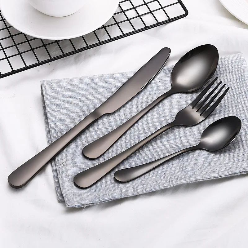 Оптовая продажа черный набор столовых приборов из нержавеющей стали столовая посуда набор серебряных приборов столовый нож и вилка вилки, ножи, ложки