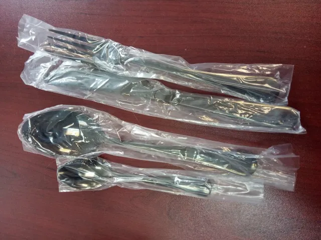 каждый прибор в индивидуальной упаковке, но имеются косяки, видимо с завода так. полировка почти нет или нет вовсе, но сейчас почти все такие приборы делают. в посудомойке мыть можно