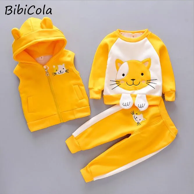 Комплект одежды для маленьких девочек BibiCola, Осенний хлопковый костюм для девочек, кофта и штаны, комплект из 2 предметов