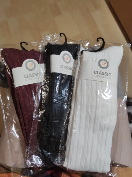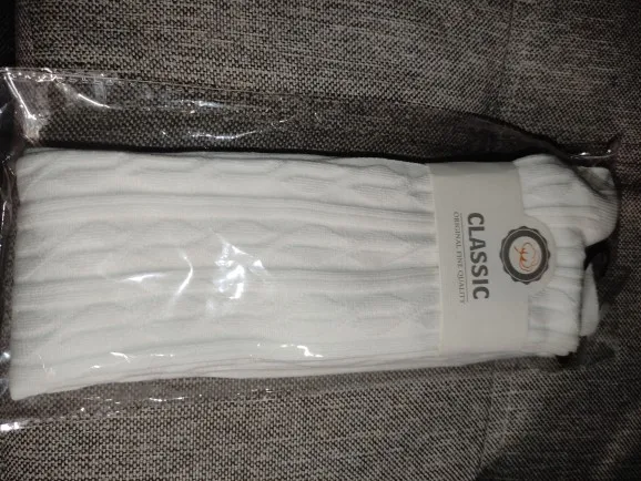 Клевые гольфики, очень качественно сделанные - никаких торчащих ниток и затяжек. Пришли с прикольной вешалкой, можно куда-нибудь повесить ) Хорошо тянутся, резинка не жмет. Мягкие и приятные к телу, буду носить с удовольствием! А, да, чуть не забыла: приехали меньше чем за месяц, рекомендую!