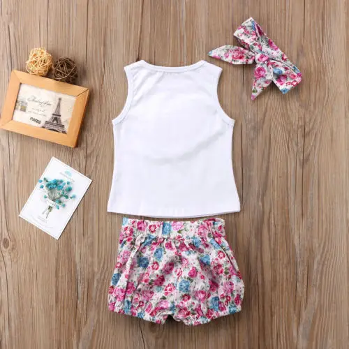 Хлопковая футболка для новорожденных девочек, платье, штаны, одежда для малышей, футболка без рукавов для маленьких девочек, комплект одежды с шортами