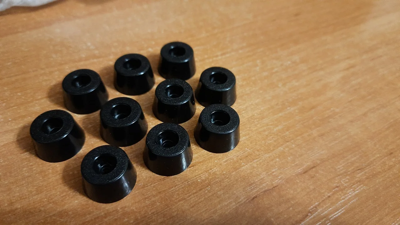 Ножки хорошего качества, резина с блеском не матовая. Большая окружность с дефектом от литья, но это не критично исправляется путём установки дефективной части во внутрь. Отлично ножки подходят для компьютерного вентилятора. Количество в посылке соответствует заявленному продавцом. Доставка в Украину мега быстрая. Рекомендую.
