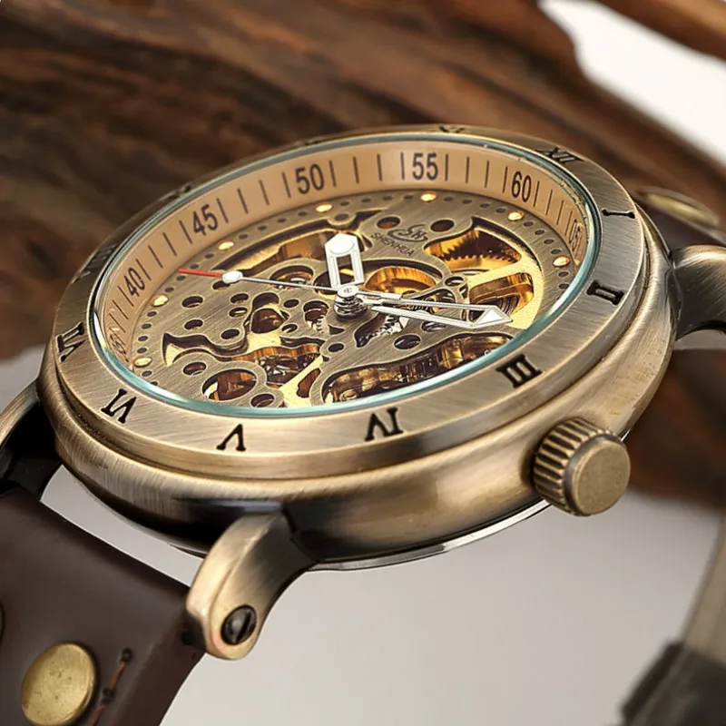 Часы-скелетоны Мужские механические, бронзовые, механические, водонепроницаемые