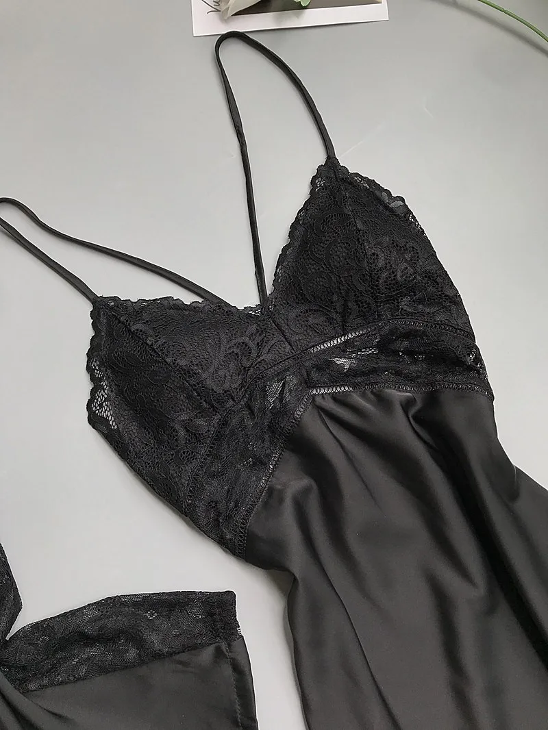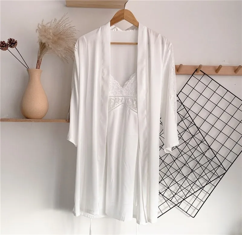 Халат-кимоно Женский, из искусственного шёлка, с кружевной отделкой