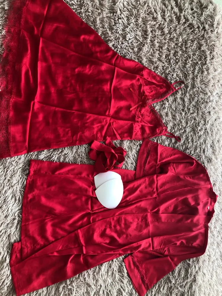 Комплект неплохой за 13 баксов! Ткань мягкая, приятная, по дому ходить на голое тело самое то! Если, конечно, у вас дома тепло и как минимум градусов 20-25)) купила в малиновом цвете, пришло как на фото! Рукава и нижняя часть украшена кружевом, что тоже понравилось! Комплект выглядит достойно и сексуально! Большой плюс для любителей пуш - апа в том, что есть дополнительные вкладыши под грудь! В общем, покупкой довольна, могу рекомендовать! Доставка быстрая была. в течение 2х недель. Даже меньше.