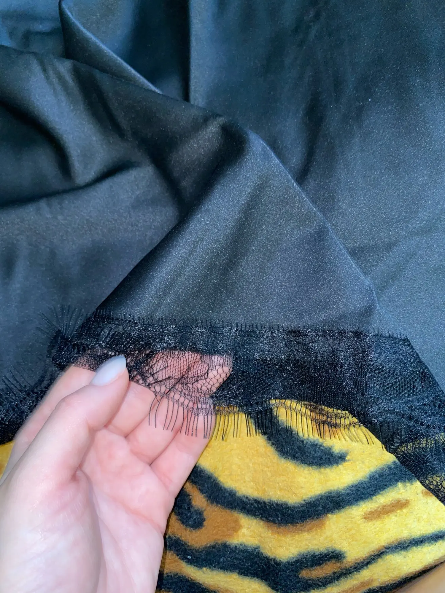 Это абсолютно потрясающе. До сих пор это лучший комплект, который я купил у Али. Мне даже нравится это больше, чем OYSHO или другие бренды... Я сделал фотографии без глажки, я знаю, но просто попробовал это как можно скорее, ха-ха, материал супер мягкий, приятно спать, размер соответствует моему 90/75/103 идеально. Я рост 167 см.
