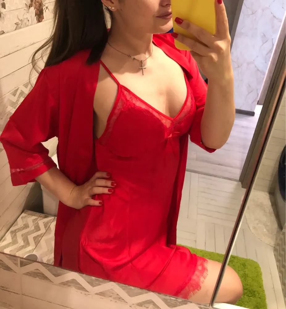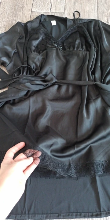 Товар пришёл быстро! Качество отличное, за такую цену шикарное! Швы ровные, хорошо обработаны, пару ниточек только обрезала. На параметры 86/72/98 рост 170 ночную взяла размер L, а халат XL получилось идеально, как и хотела, ночная более облегающее сидит, а халат свободно!!!