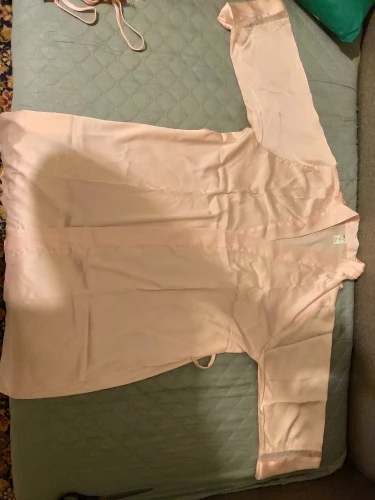 Качество бесспорно понравилось, но не совсем подошёл размер. Ношу L, по отзывам читала, что маломерка, поэтому заказала XXL, но все равно оказался в груди тесноват. Халат хорошо сидит, но сорочка вот маловата.