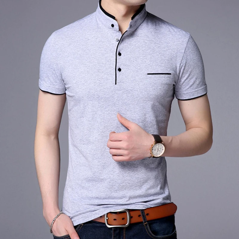 Мужская футболка Liseaven, с воротником-стойкой, базовая футболка, мужская рубашка с коротким рукавом, Новые Топы И Футболки, хлопковая футболка