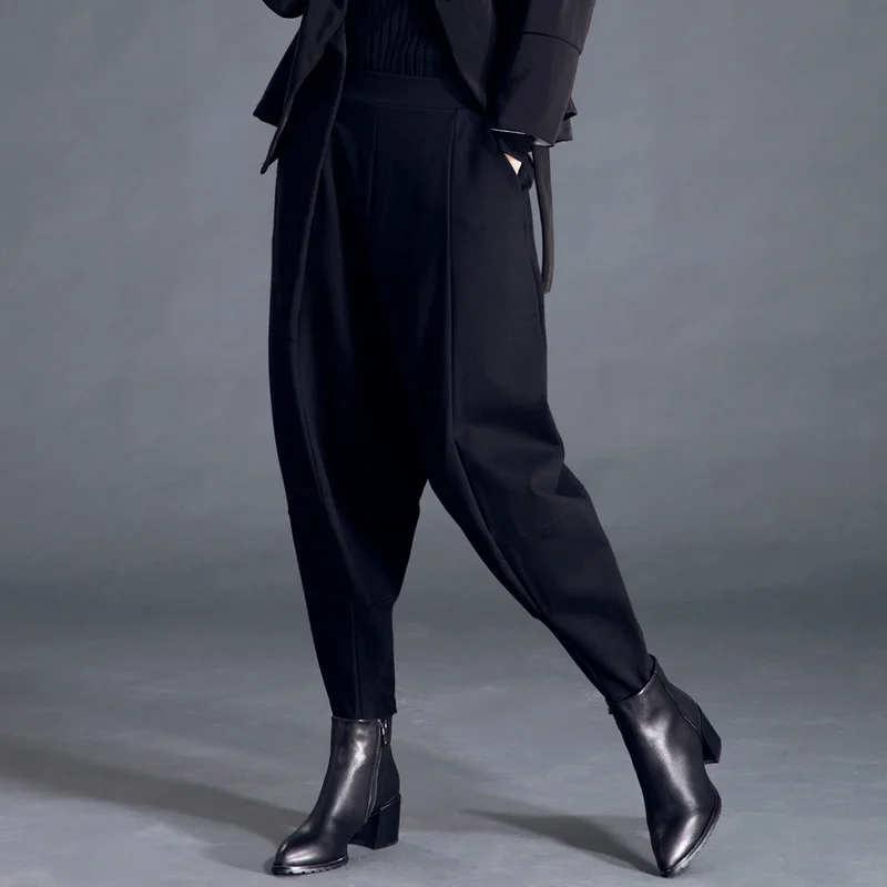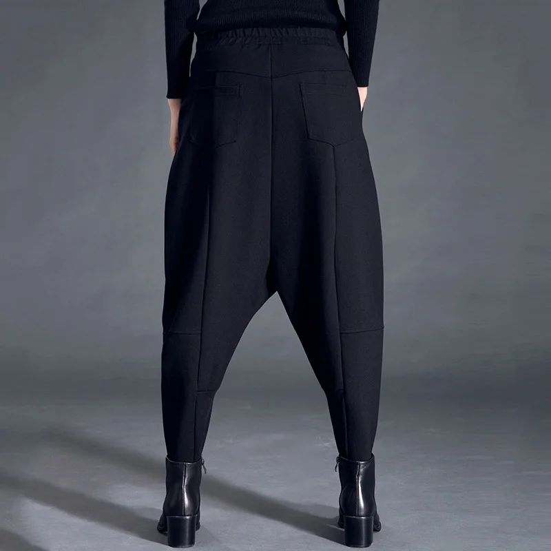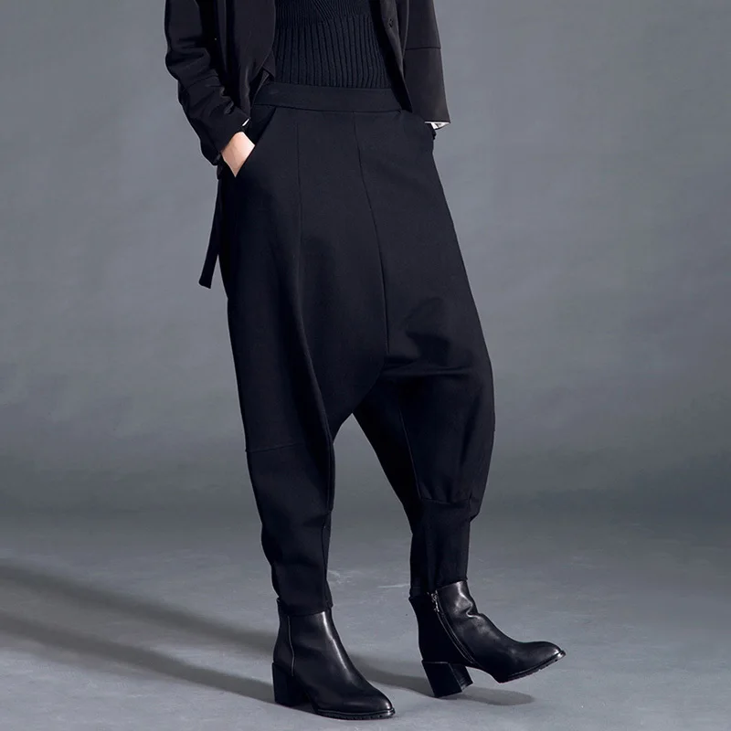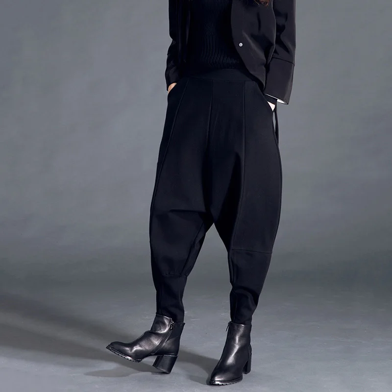 EAM 2022 новые весенние модные черные повседневные женские шаровары с высокой талией и эластичными карманами SA155
