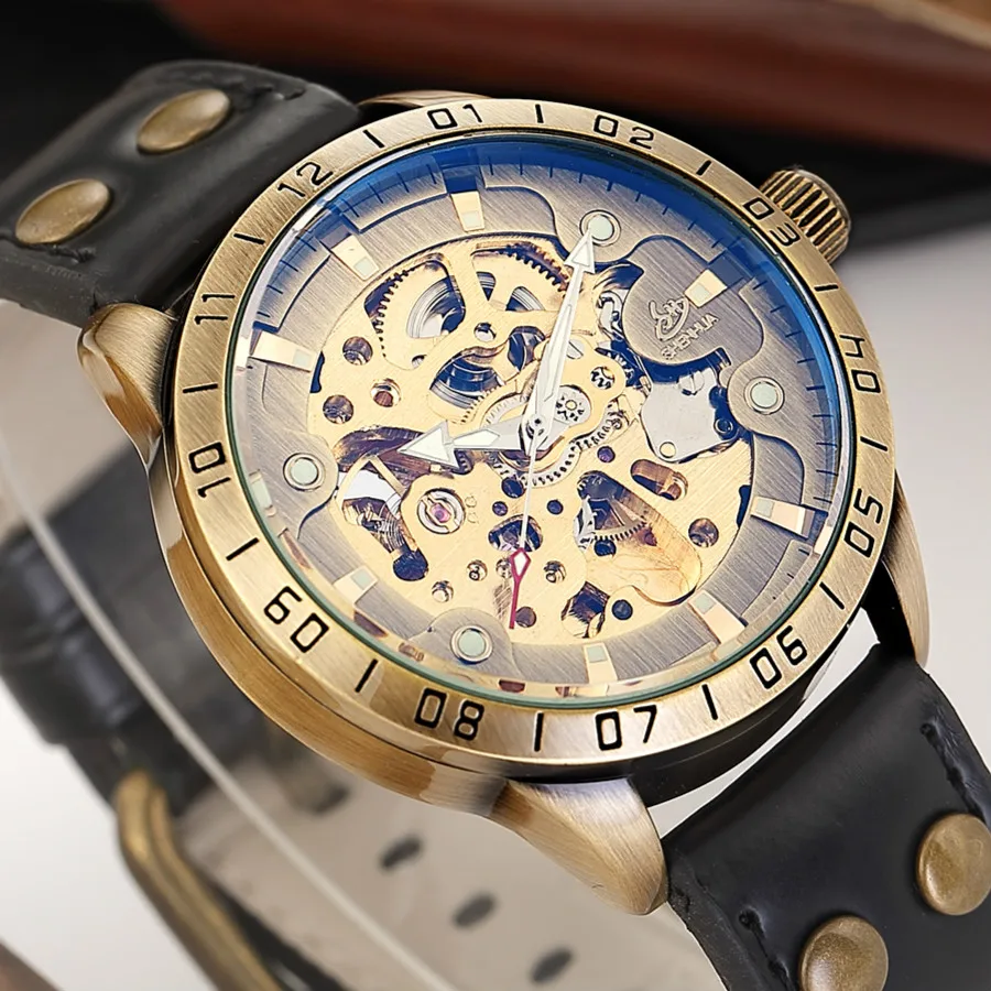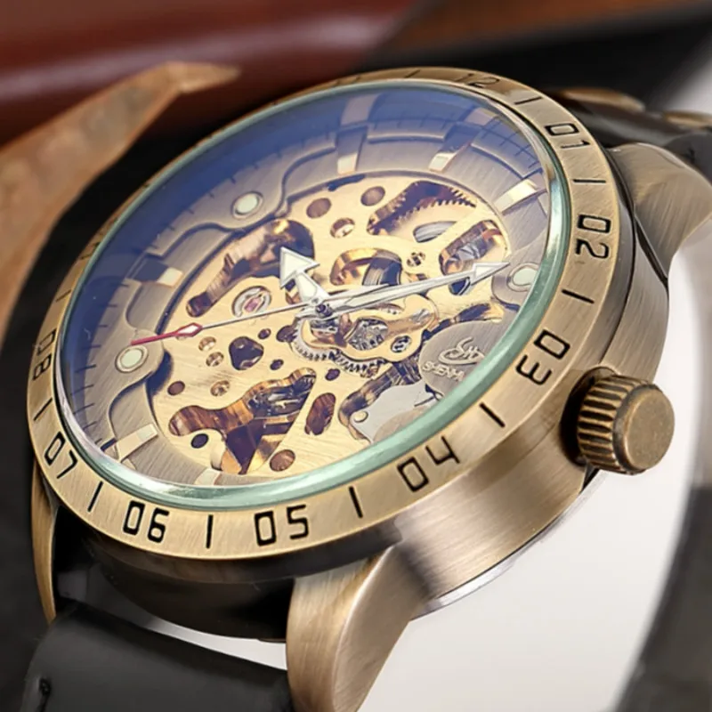 Часы-скелетоны Мужские механические, под бронзу, под старину