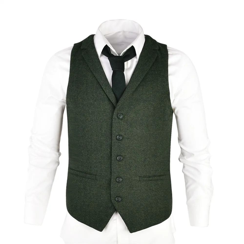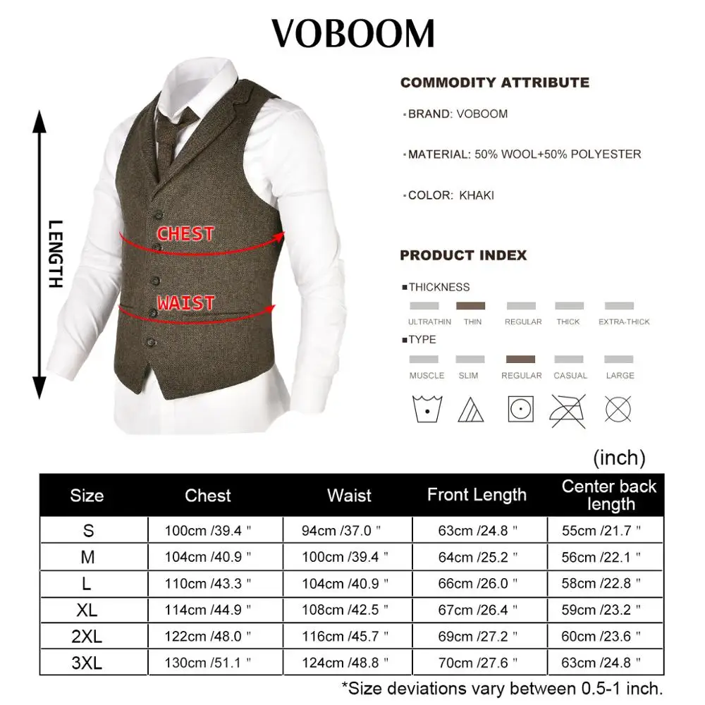 Мужской шерстяной твидовый костюм VOBOOM, приталенный однобортный жилет в елочку из смеси шерсти премиум-класса, 018