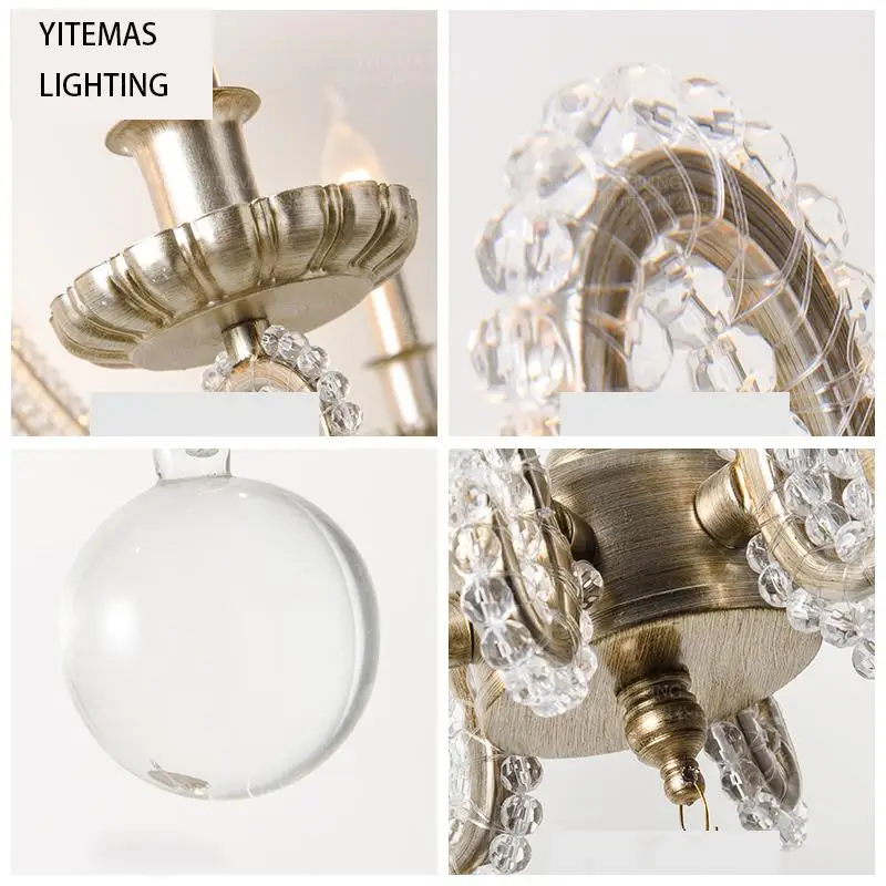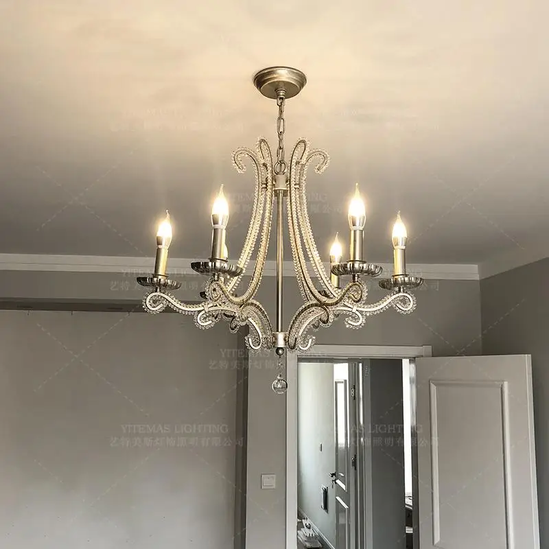 Скандинавская хрустальная люстра для украшения дома, лампа в европейском стиле, антикварная Матовая Серебристая богемная, 3 лампочки, 6 лампочек, 8 лампочек