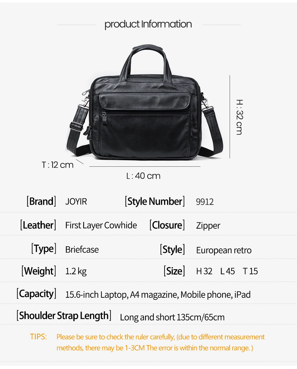 Роскошный мужской портфель JOYIR из натуральной кожи, повседневный деловой портативный вместительный мессенджер на плечо, сумка для ноутбука 15 дюймов