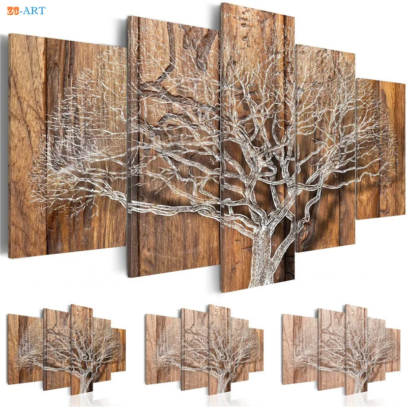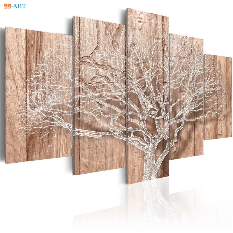 Картина с изображением деревьев, плакат, настенная живопись, 5 шт., современный холст, искусство, модульные фотографии для спальни, домашний декор