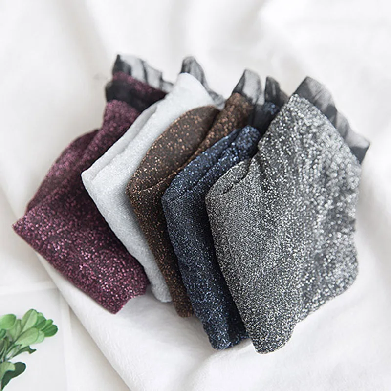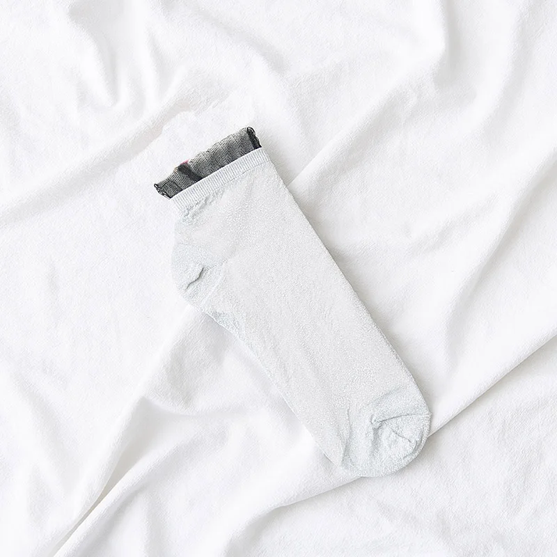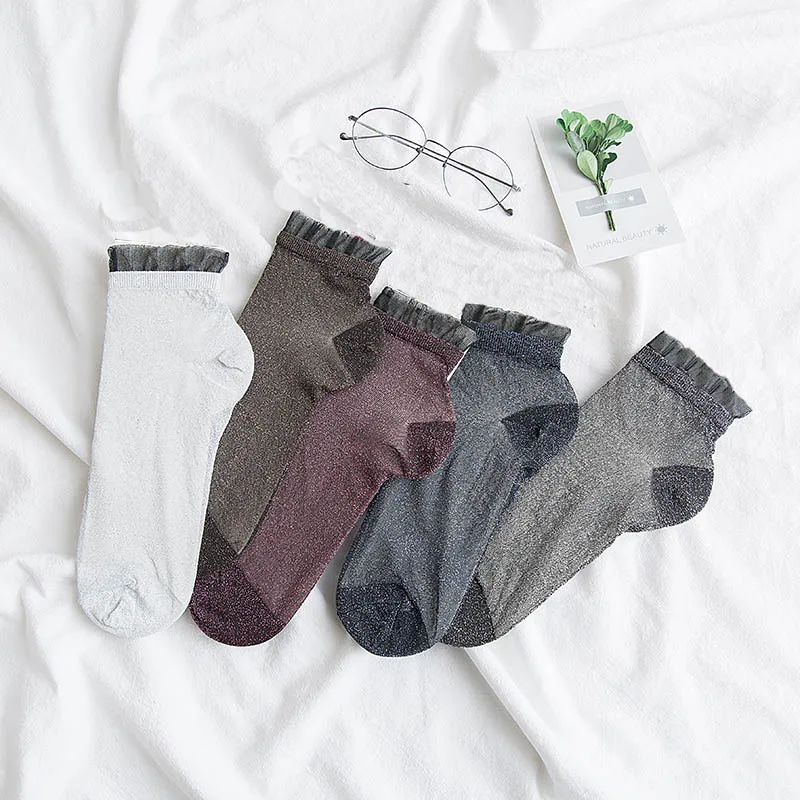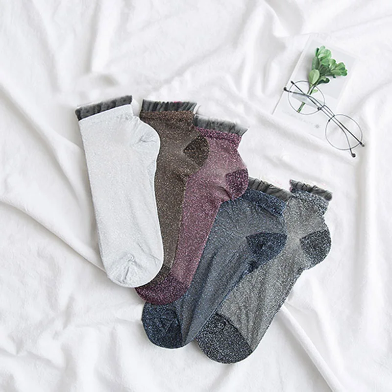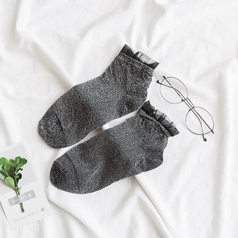 COSPLACOOL блестящие цветочные кружевные серебряные ультратонкие прозрачные милые носки креативные японские блестящие носки Харадзюку женские носки