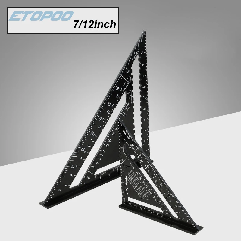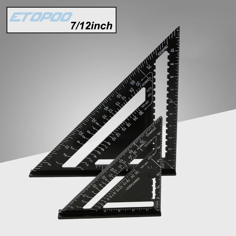 Угловая линейка 7/12 дюйма, Метрическая треугольная измерительная линейка из алюминиевого сплава, скорость по дереву, квадратный треугольный угол, транспортир, измерение