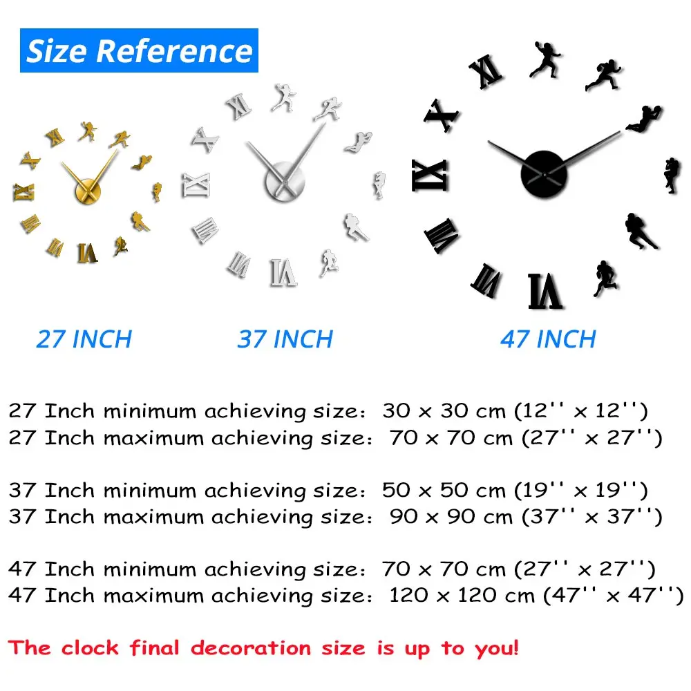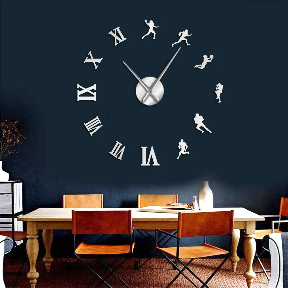 Гигантские настенные часы для американских футболистов, сделай сам, вентиляторы регби, декор для спортивной комнаты, современный дизайн, большие бескаркасные настенные часы