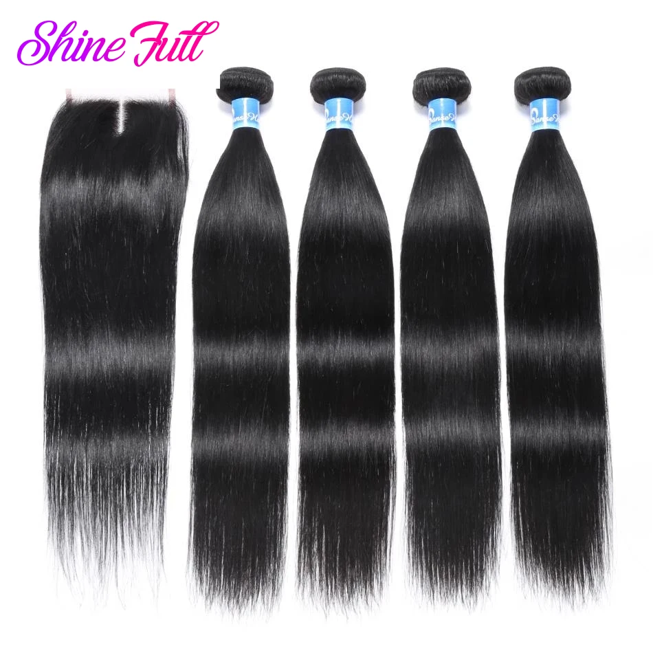 ShineFull волосы бразильские прямые человеческие волосы 4 пряди с з...