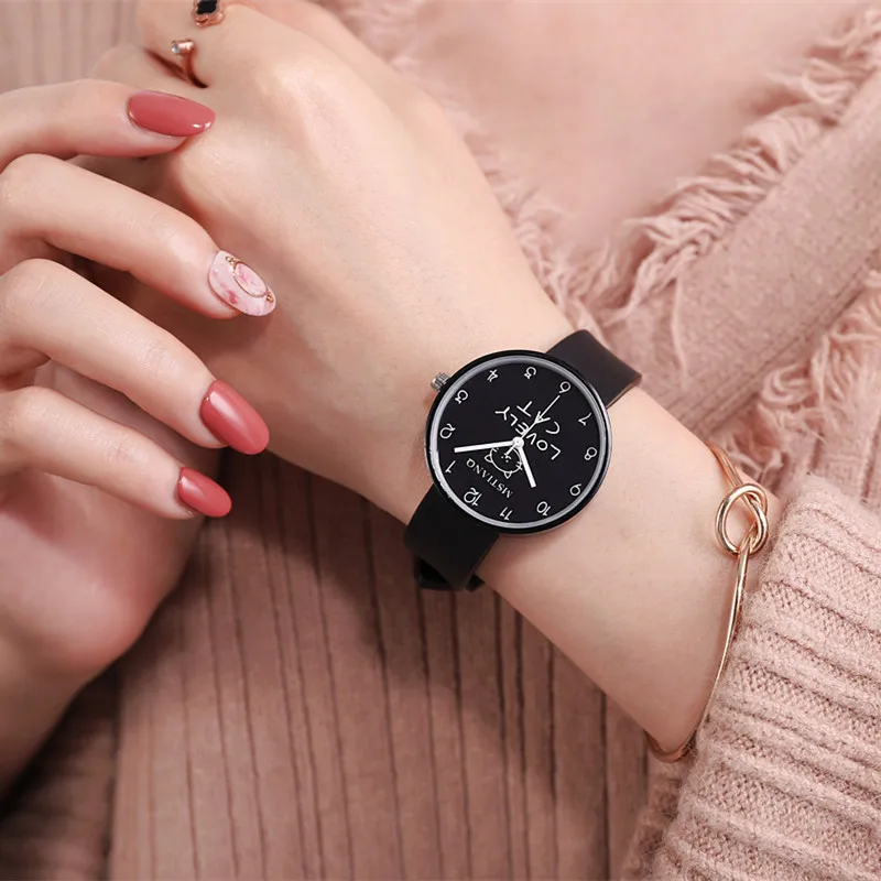 Женские кварцевые часы с круглыми циферблатами, кварцевые часы карамельных цветов с рисунком кота, 2018