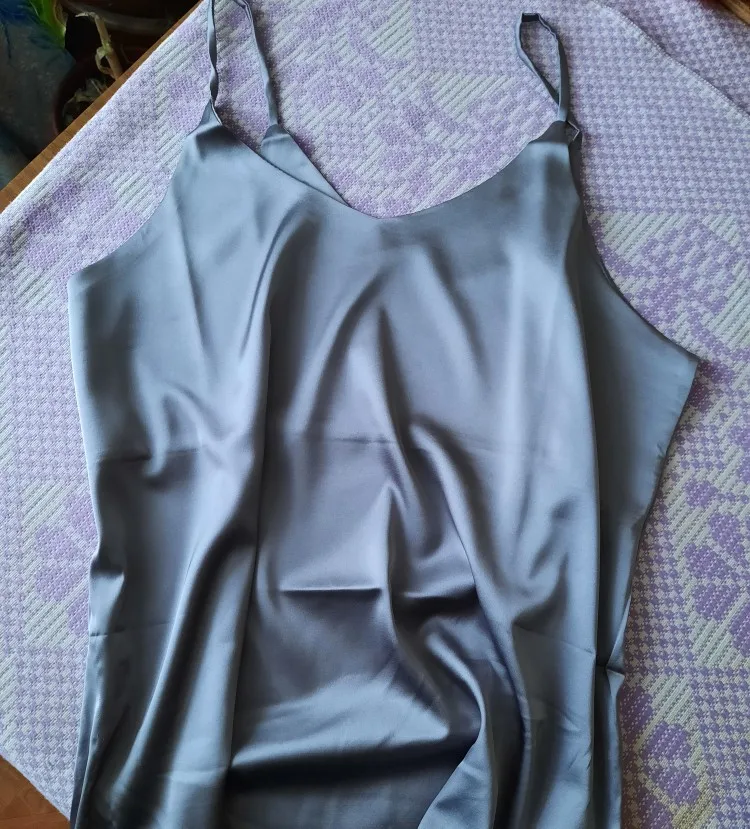 Отличный топ. Ткань гладкая, похожа на атлас, но немного стрейч. Взяла xl, на ОГ 92 ОТ 80 идеально! Спасибо продавцу! Рекомендую.