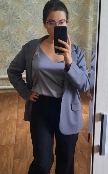 На ОП 41, ОТ 77, ОГ 94 сидит замечательно, ничего не торчит. Ткань гладкая, красивая, нарядная, отличная деталь гардероба, которая освежила многие мои образы.