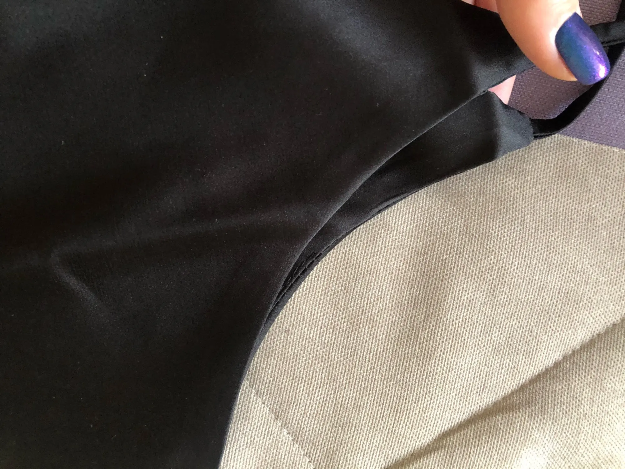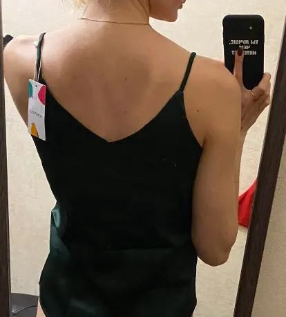 Просто обалденный топ, честно, ожидала хучшего. Все строчки очень ровные, изнутри вверху два слоя ткани для лучшей посадки, подмышками ничего не торчит , хорошее лекало. Ткань очень приятная на ощупь, не дешманская, затяжки от любого вздоха не остаются, выглядит действительно качественными базовым топом, а не нижним бельём, как многие другие. К покупке очень рекомендую, я выбирала очень долго и тщательно и рада, что получила именно такую вещь! Ткань к телу электризуется, нужен антистатик, но при этом, радует то, что нет хруста Эл. разряда как в дешманских вещах.