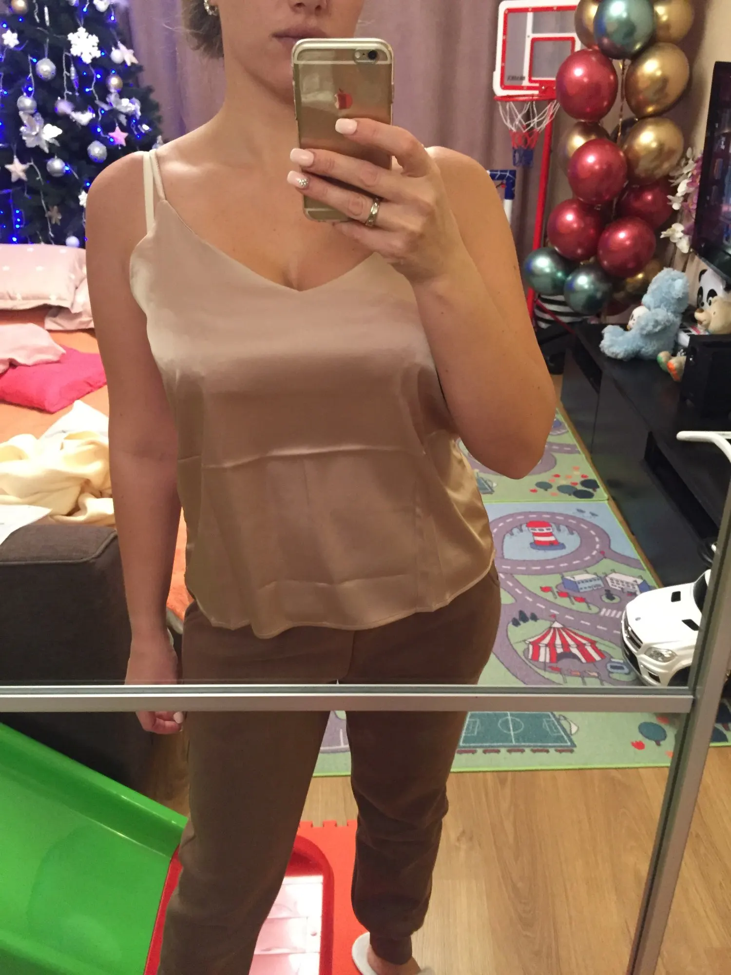 excellent! thank you seller! топ шикарный! атлас добротный, достаточно плотный. цвет - это просто восторг! очень нежно и дорого смотрится в данном оттенке. что-то среднее между цветом шампанского и кофе с молоком(на последнем фото камера наиболее точно передала оттенок). покрой и пошив замечательный, бирки прилагались.фабричная вещь! на грудь 90 и талию 76 заказывала L. сел топ хорошо за счёт эластичной ткани, но можно было бы заказать и XL, для более свободной и расслабленной посадки. гладится и отпаривается просто замечательно. я в восторге, спасибо!