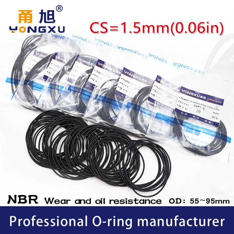 Черное уплотнительное кольцо NBR 10 шт.лот, CS1.5mm OD556065707580859095*1,5 мм, уплотнительные кольца, Уплотнительная резиновая нитриловая прокладка, масляное кольцо, шайба