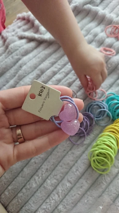 Резинки очень милые, маленькие для малышек отлично, но сами резиночку не лучшего качества, красивые, но могут царапать и цепляться за волосики. Буду менять. Звёздочки и сердечки прелестные, с микроблеском внутри