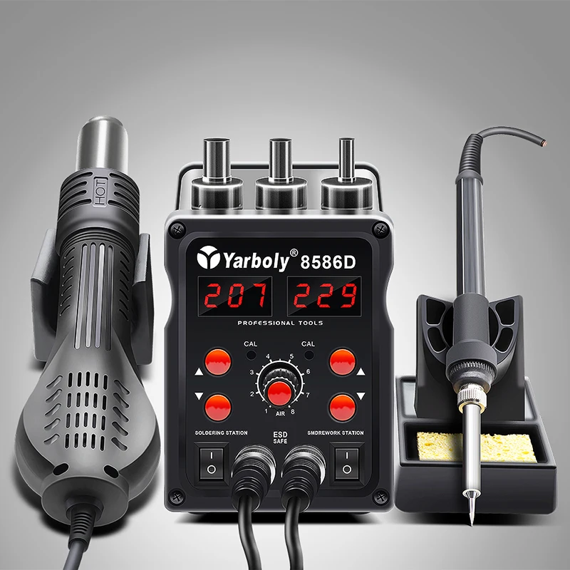 Паяльная станция 8586D с двойным цифровым дисплеем 2 в 1 SMD, наладочная паяльная станция, Термофен, паяльник, чем 8586 858D 858 898