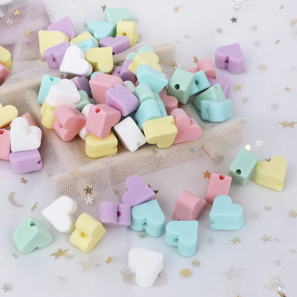 100 шт. силиконовые бусины в форме сердца Сделай Сам грызунок пищевой Прорезыватель для зубов, не содержит бисфенола А, экологически чистый жевательный силикон