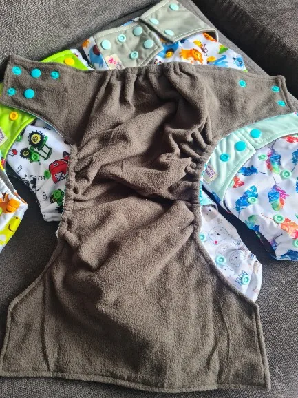 Это карманные подгузники с полиуретановыми нитями наружный и один слой из бамбукового волокна и подкладка из микрофибры. Я не покупал вставки, так что я не знаю из скольких слоев они.