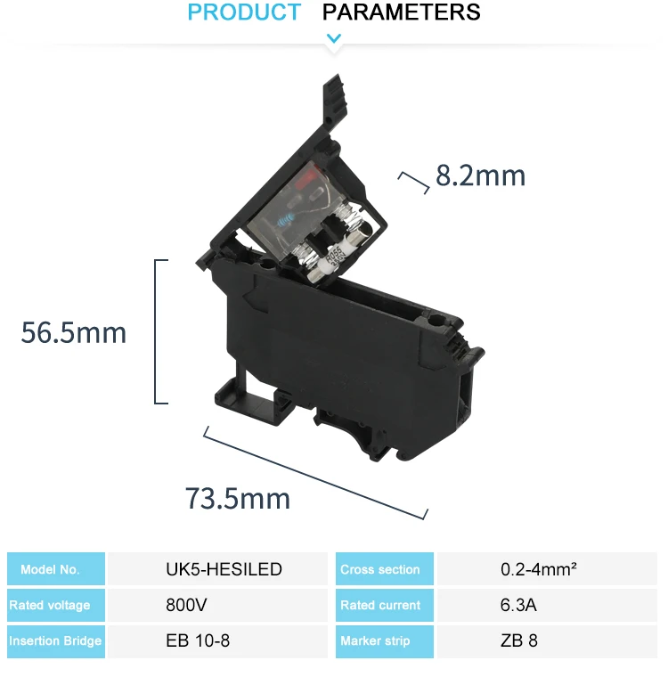 10 шт. UK5HESI UK5-HESI черный винт тип Предохранитель рычаг разъединения светодиодный UK 5 HESI провод электрический разъем Din рейку Клеммная колодка