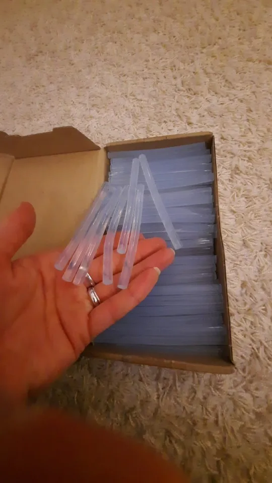 Доставка заняла чуть меньше месяца. Всё соответствует по параметрам и количеству! + Палочки клея беленькие, прозрачные, не жёлтые, как бывают. Отлично! Были сложены в коробочке. Ещё в действии не применялись. Положили +3 штучки дополнительно.