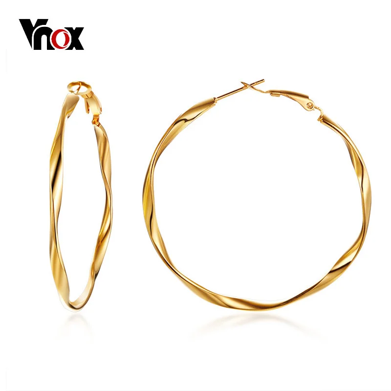 Vnox модные большие серьги-кольца для женщин, золотистые серьги из нержавеющей стали, круглые серьги, Женские Ювелирные изделия, oorbellen