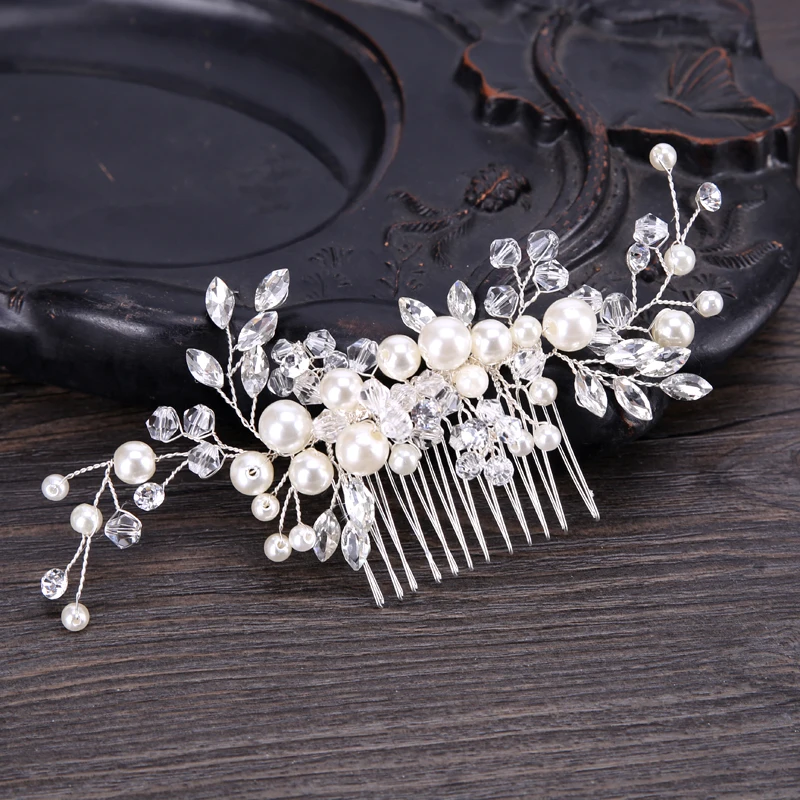 Свадебная расческа для волос Стразы, свадебные украшения для волос с белыми жемчужинами, гребни для подружки невесты, Ювелирное Украшение для волос