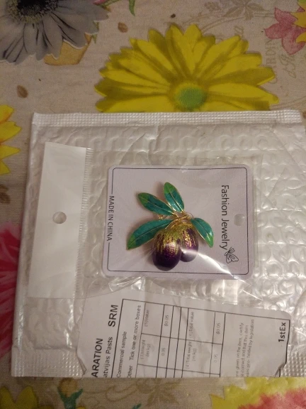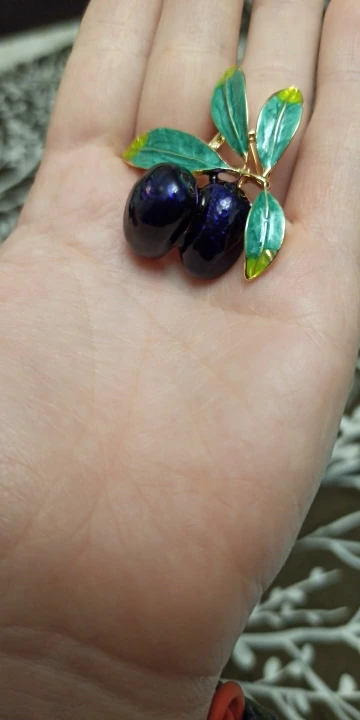 Товар отправили и доставили быстро. Брошь точно к как на фото. Эти оливки выглядят так натурально, что хочется попробовать. Замок хороший, не расстегивается просто так.