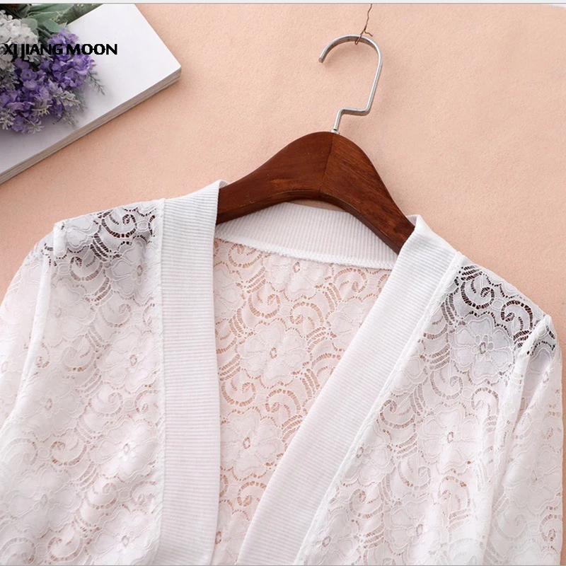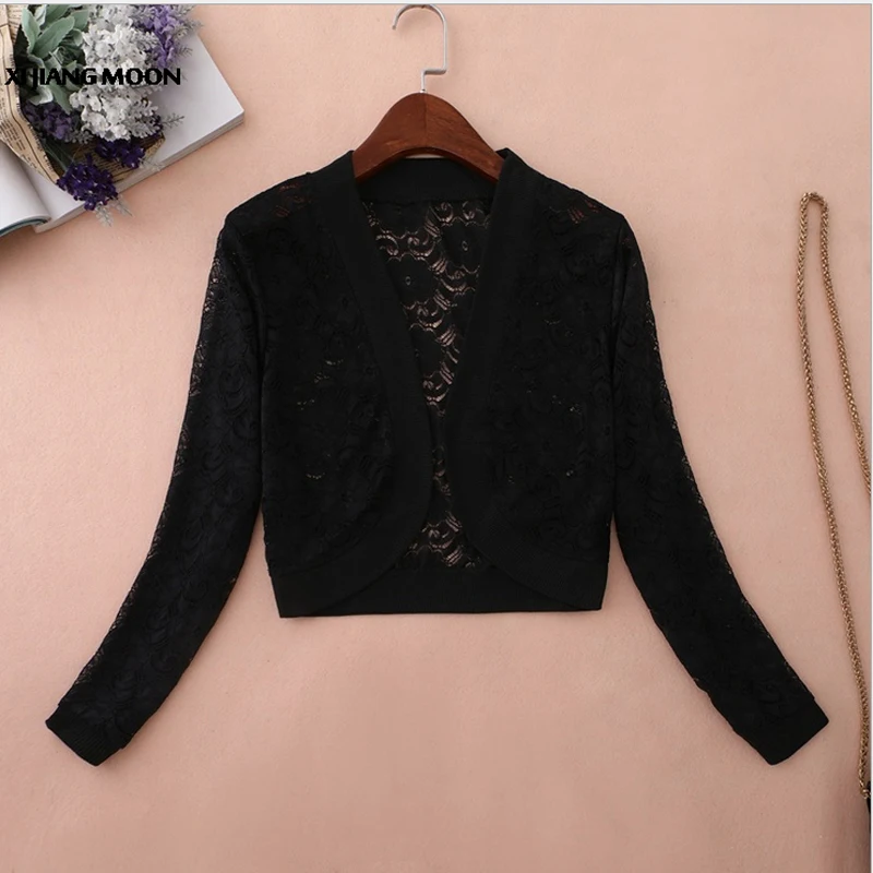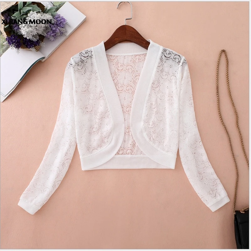 Женский кружевной короткий кардиган, вязаный крючком свитер с длинным рукавом и V-образным вырезом, модель R346, лето 2021