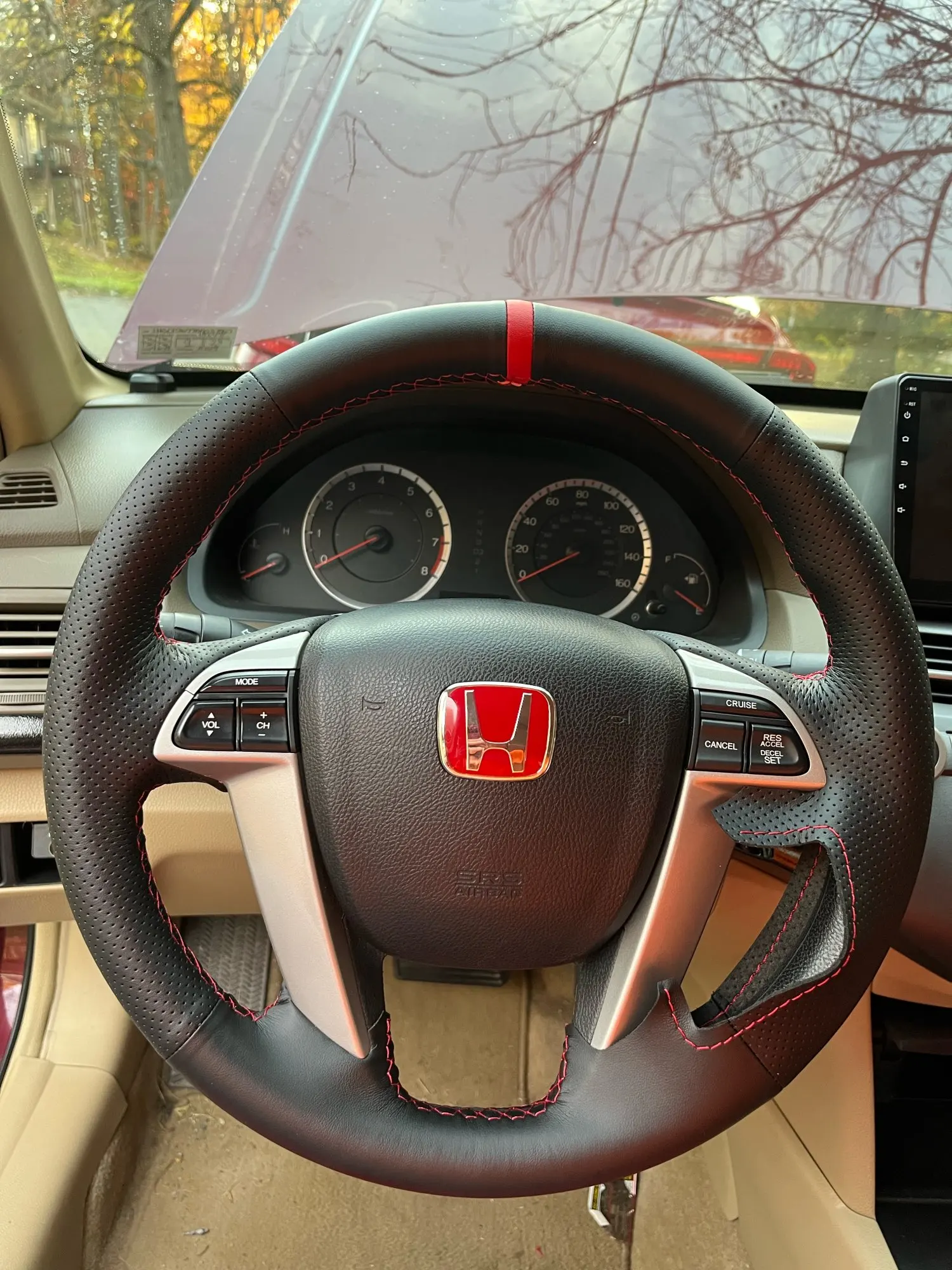 HuiER ручной пришитый чехол рулевого колеса автомобиля, красный мар...