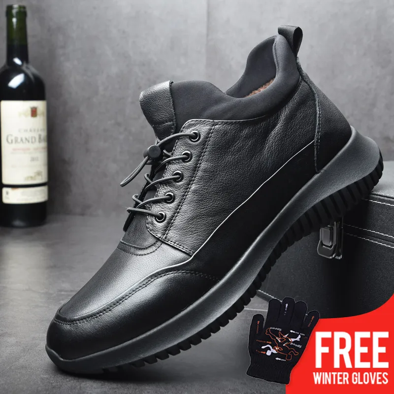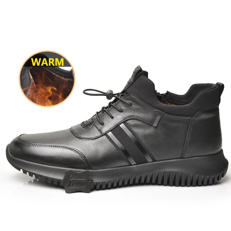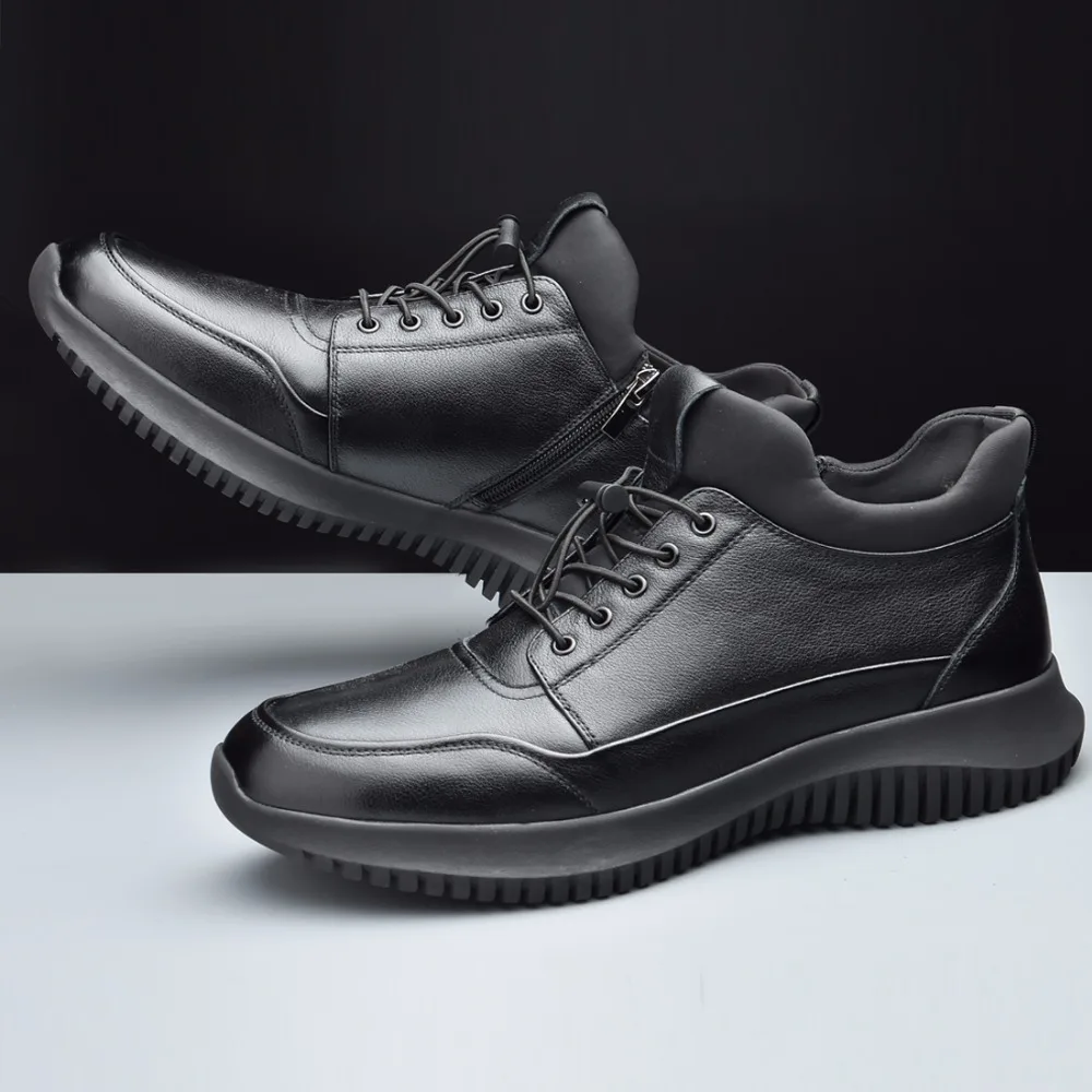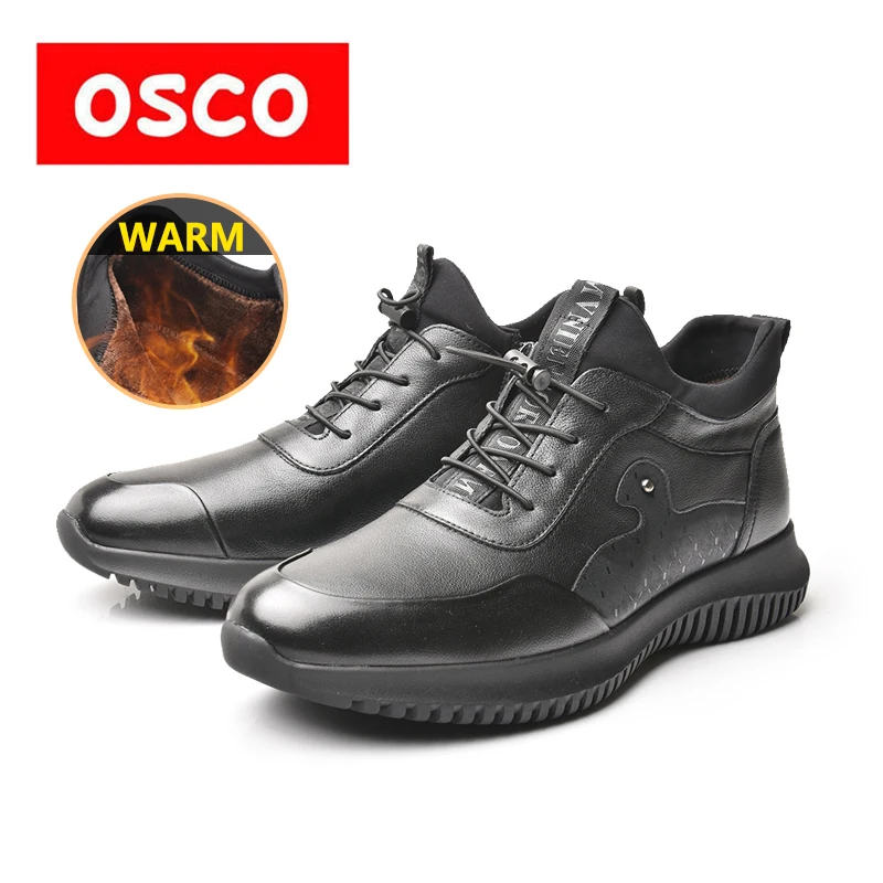 Мужские теплые кроссовки OSCO, черные повседневные кроссовки из натуральной кожи на шнуровке, на молнии, с высоким берцем, на плоской подошве, зима 2019